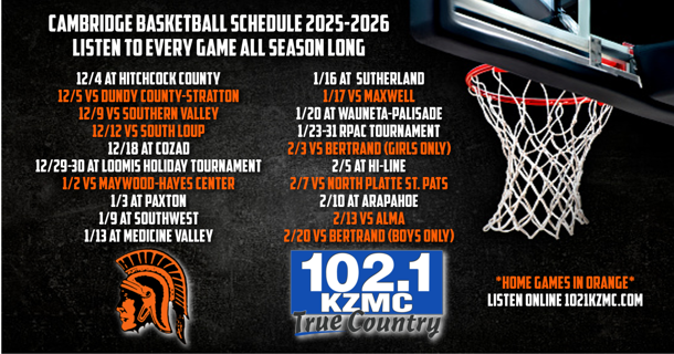 Listen to Cambridge High School Basketball starting Thursday, December 4th.  Listen to every game all season long from 102.1 True Country and online 1021kzmc.com.